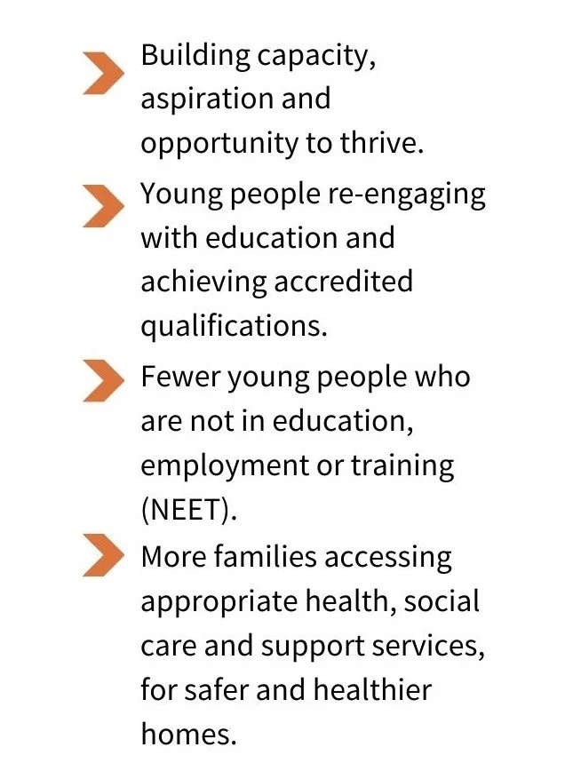 We are solution-focused and asset-based, building on the strengths of our young people and community. Our targets are co-authored as we seek to understand the priorities and ambitions of our young people and families, and we see the best in every one.