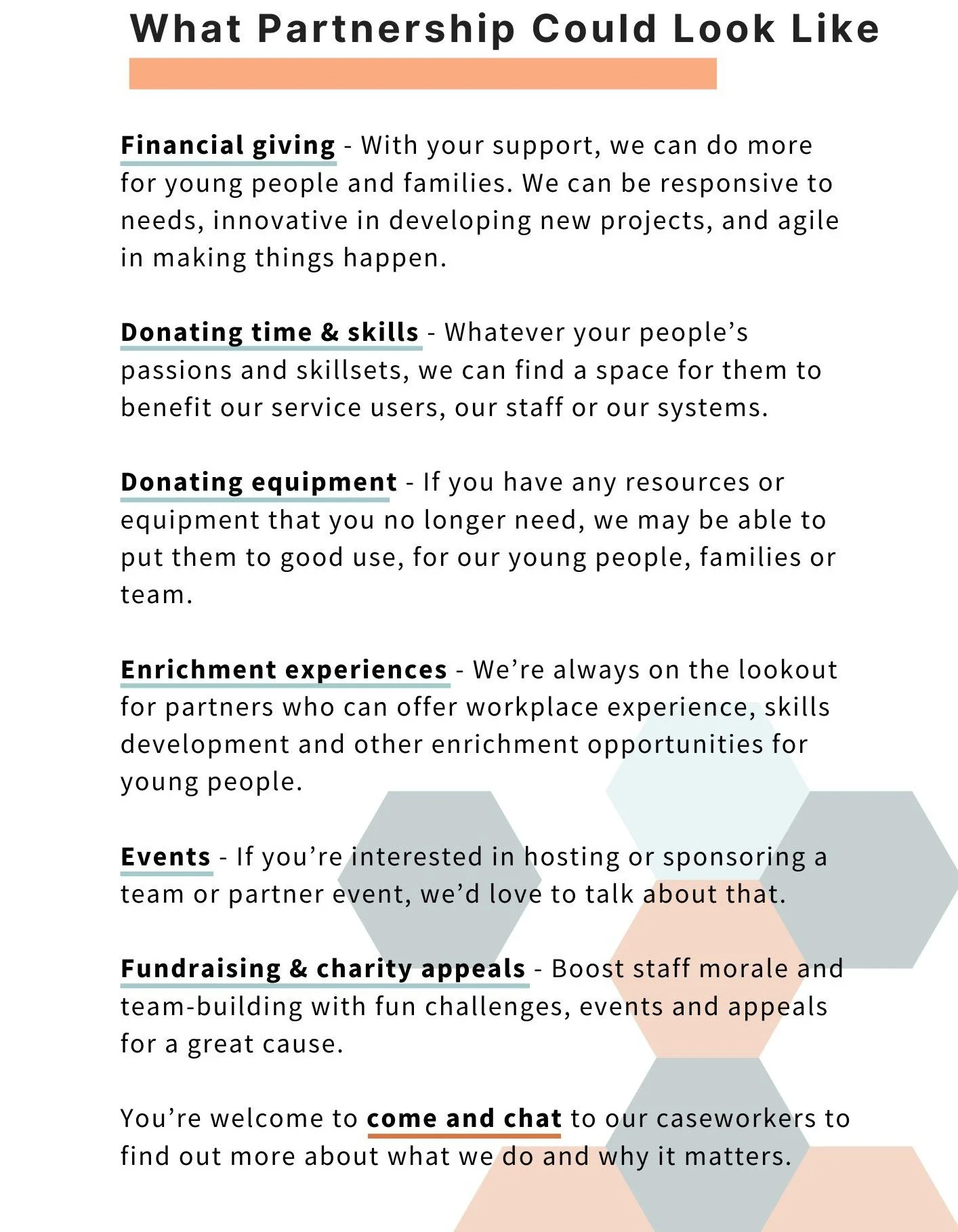 We work in genuine partnership and collaboration with other professionals across education, social care and youth justice, maximising our collective strengths and resources to be as effective as possible.